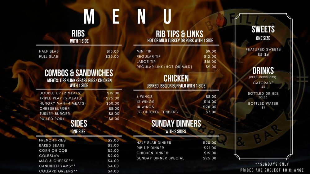 Welcome to BoFill’s BBQ & Bar, a hidden gem nestled in Oak Forest, IL. This vibrant eatery specializes in mouthwatering barbeque that leaves an unforgettable impression. Menu highlights include Rib Tips available in various sizes, from mini to large, paired perfectly with flavorful sides like Baked Beans and Mac and Cheese (Sundays only).